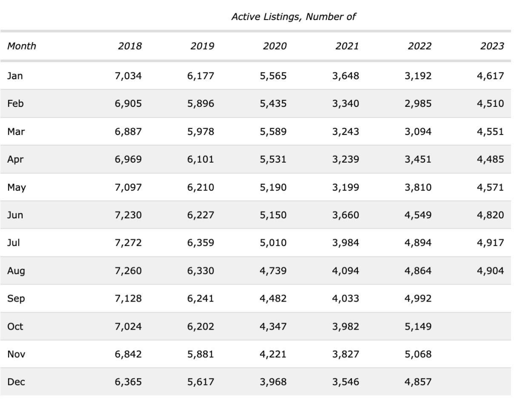 We have discussed the average sales price increase and interest rates, let’s discuss the average listings. Pre Covid numbers in August of 2018 had 7,260 listings just in that month alone! This year there were 4,904. That is a decrease of 32.45%!